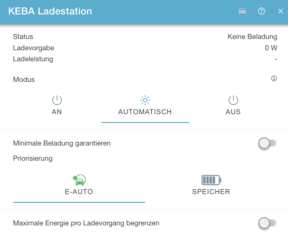 Unberücksichtigt bleibt jedoch bisher die Wallbox. Weder weiß FEMS den Ladezustand des Autos, noch wird derzeit das Auto geladen.