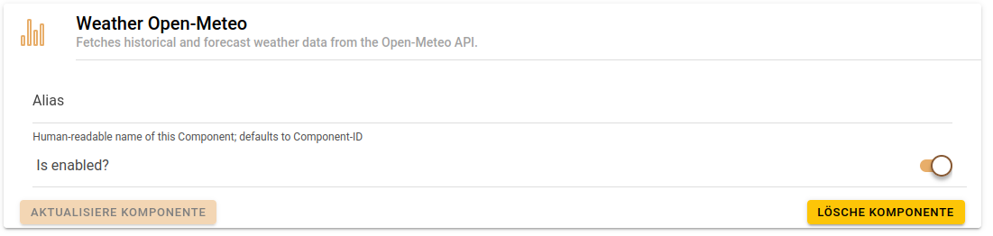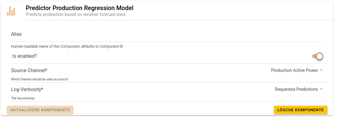 Wir greifen via API von Dienstleister „open-meteo“ die Vorhersagedaten für die „shortwave radiation“ anhand der Koordinaten für die nächsten 24h ab. Der Dienst ist für den „non commercial“ Gebrauch kostenfrei. Der Wert wird in w/m² angegeben. Diesen Wert rechnen wir auf die installierte Anlagengröße hoch (Anz. Module * Fläche pro Modul * shortwave radiation w/m²). Anhand von historischen Daten haben wir den durchschnittlichen Wirkungsgrad der betrachteten Anlage berechnet und können somit den PV-Ertrag der Anlage auf Basis der shortwave radiation im 1h Raster vorhersagen.